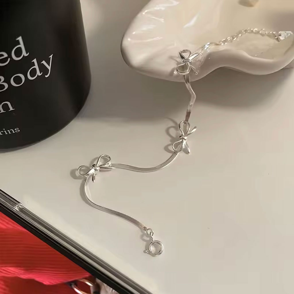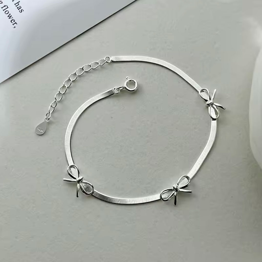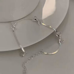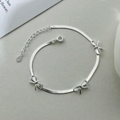 دستبند پاپیونی زنجیر ماری با طراحی ظریف و درخشش ملایم، انتخابی سبک و شیک برای استایل روزمره.