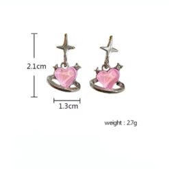 ست ۶ تکه گوشواره قلبی سوزنی با طراحی قلب، ستاره و کریستال صورتی، مناسب استایل Y2K و کرهای برای استفاده روزمره یا هدیه.
