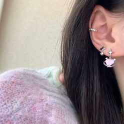 ست ۶ تکه گوشواره قلبی سوزنی یک انتخاب متنوع برای افرادی است که استایلهای فانتزی، Y2K و کرهای را دوست دارند.