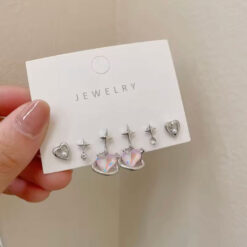 این ست ترکیبی از گوشوارههای قلبی، ستارهای و نگیندار را ارائه میدهد و امکان ستکردن با لباسهای مختلف را فراهم میکند.