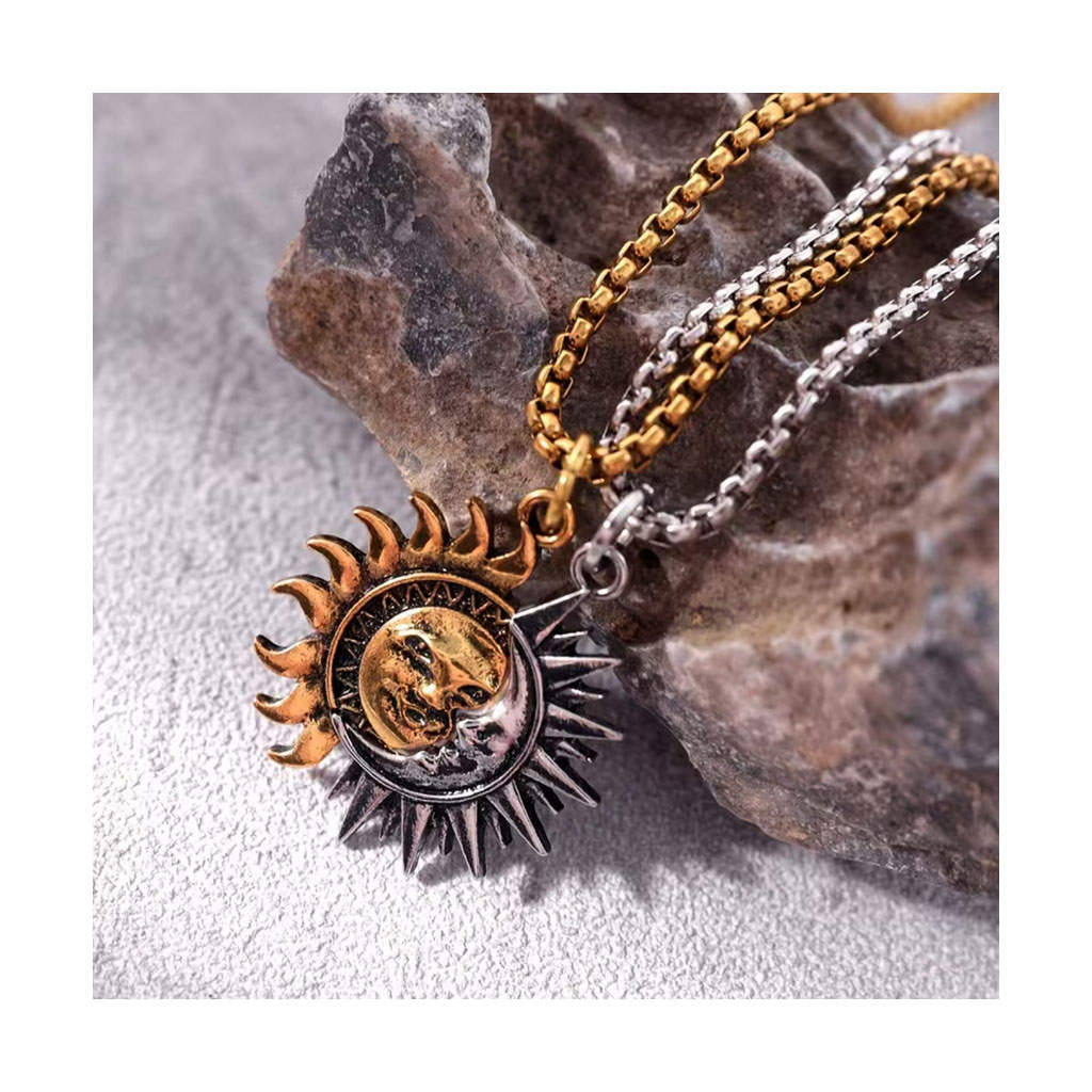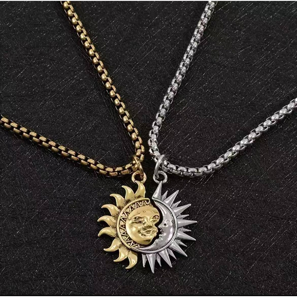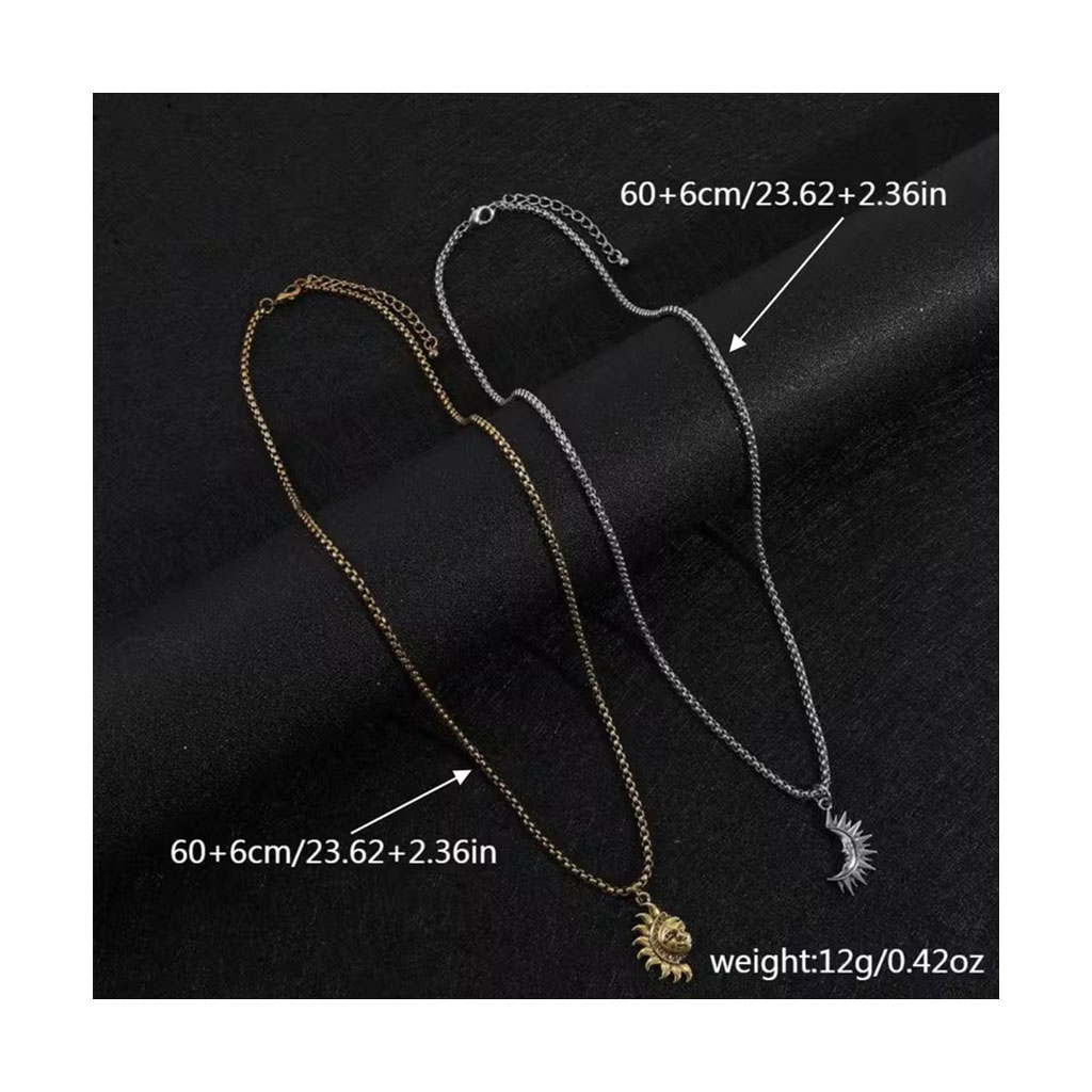 گردنبند کاپلی خورشید و ماه با طراحی مکمل، استیل ضد زنگ، زنجیر ۶۰+۶ سانتیمتر. مناسب هدیه زوجی و ولنتاین.